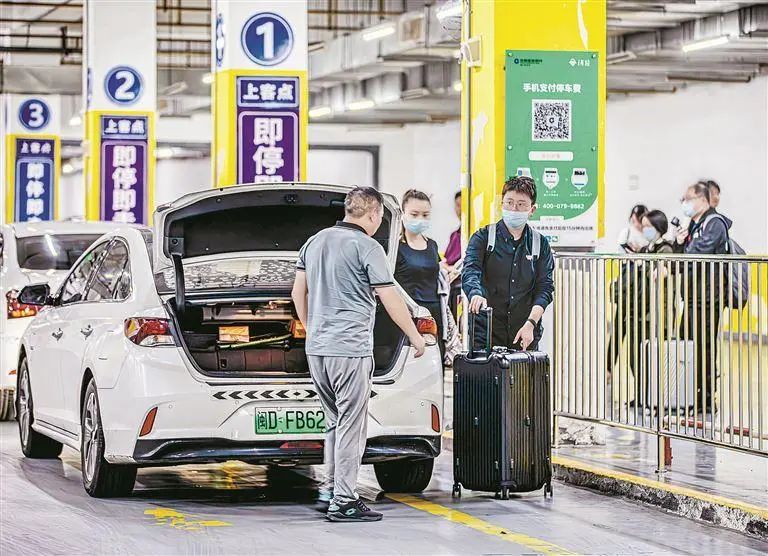 遇到携带大件行李的旅客,网约车驾驶员会主动提供服务。(厦门日报记者 卢剑豪 摄)