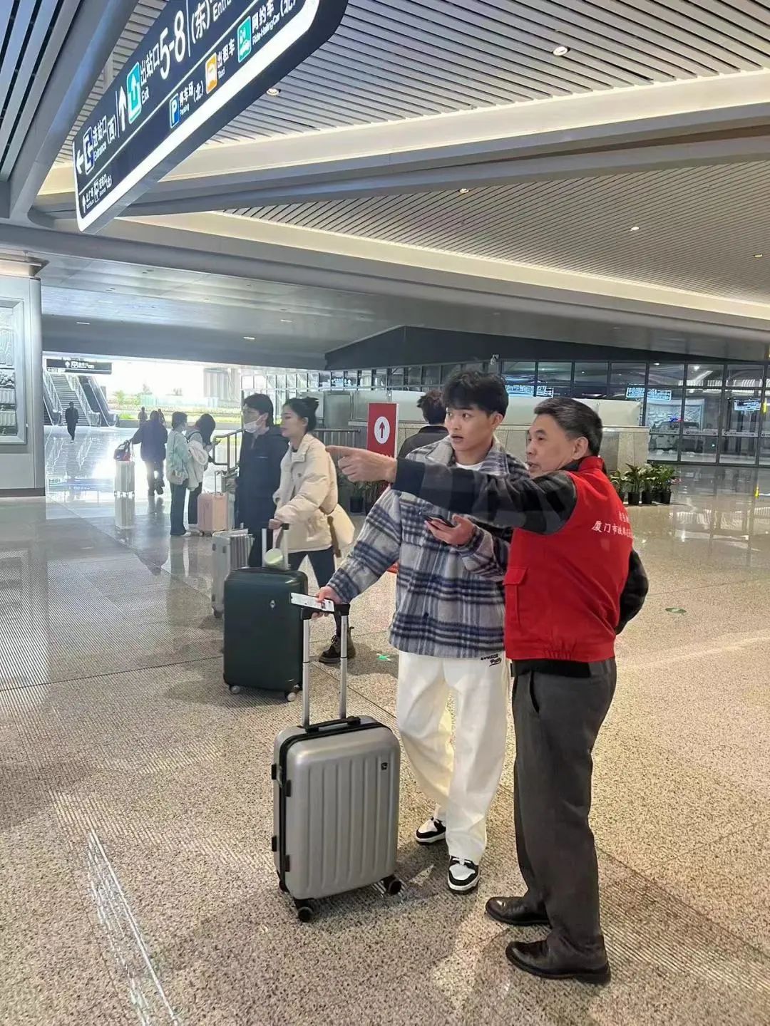 志愿者上前帮忙提行李