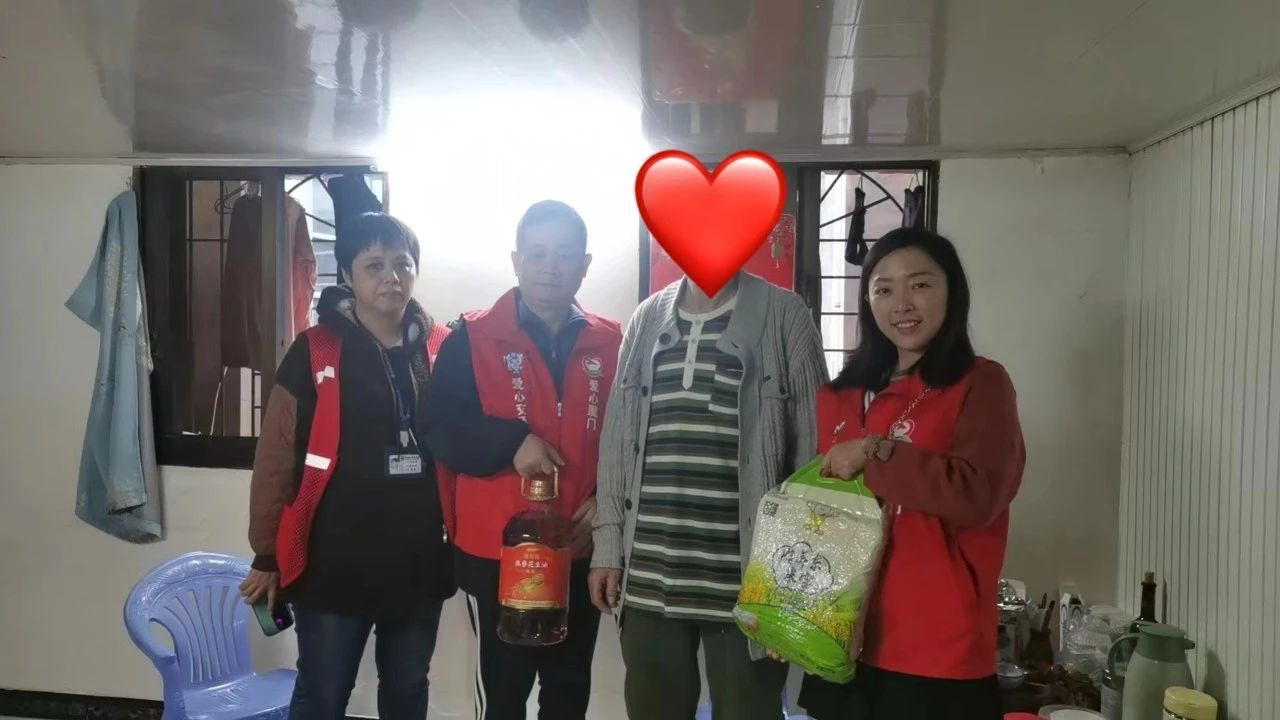 在走访过程中,志愿者们每到一户,都详细地了解困难群众的生活近况,亲切地与老人们促膝交谈,跟老人们聊聊日常,关心他们身体健康。志愿者们提前将准备好的米油等慰问品亲手交到老人们手里,并为社区困难群众送上龙年祝福。
