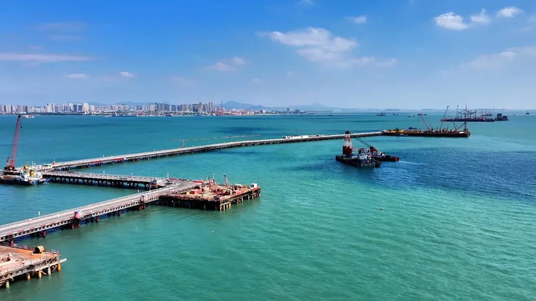 2024年以来,厦金大桥(厦门段)紧扣海上大型预制构件吊装、刘五店航道桥建设、陆上盾构暗挖隧道等主线任务全面发力,步调一致、加速向前。该项目年度投资超60亿元,岛内观音山通往刘五店航道桥西主塔2497米栈桥顺利合龙,刘五店航道桥东锚碇钢沉井成功着位,东主塔桩基浇筑完成,正式进入水上施工阶段。同时,为优化交通建设市场营商环境,创新施工许可审批模式,推行分阶段办理,缩短建设周期。海沧鳌冠大道等多个项目分阶段办理施工许可,与原计划相比,平均提前12个月开工,加速实现年度投资落地2亿元,为厦门市固定资产投资提速增效提供有力支撑。图片