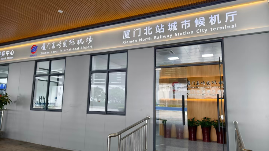 厦门北站专设城市候机厅,提供空铁联运服务,旅客乘坐高铁动车转乘飞机,可在城市候机厅办理值机、行李托运。除此之外,还可享受暖心接驳、便捷安检等服务。这种“前置值机、畅通互联”的空铁无缝转乘,可以让旅客“一身轻松”前往机场或周边旅游,享受便捷的出行旅程。