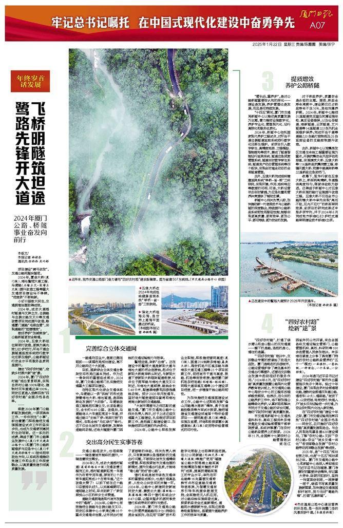 2024年,厦金大桥(厦门段)、海沧鳌冠大道工程、马青路(石塘立交-翁厝立交段)提升改造工程等重大交通项目建设马不停蹄,“进度条”不断刷新。