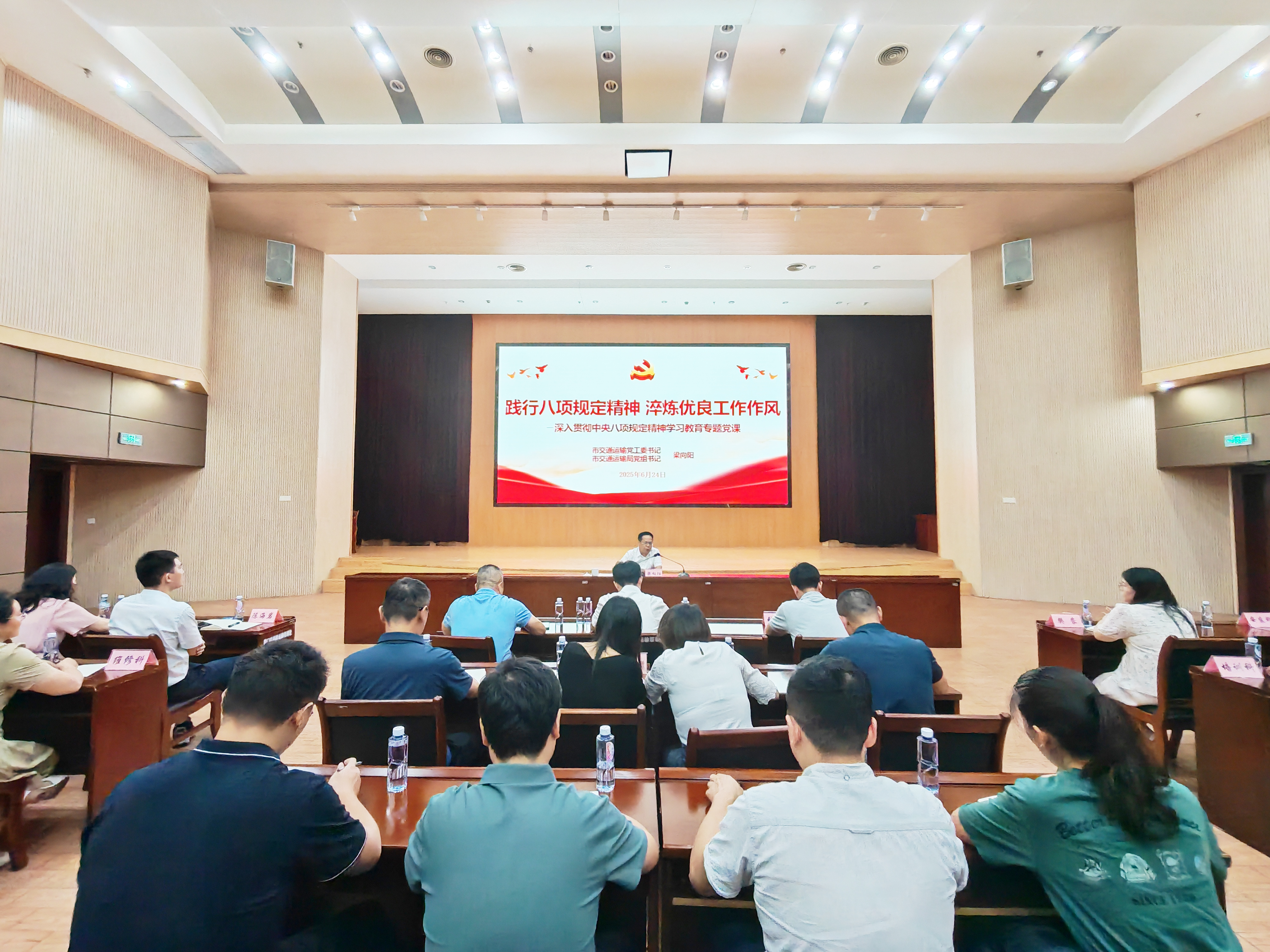为扎实推进深入贯彻中央八项规定精神学习教育走深走实,进一步强化纪律作风建设,提高党员干部廉洁自律意识。6月24日上午,市交通运输党工委书记、局党组书记梁向阳为市运输事业发展中心全体党员干部讲授专题党课。
