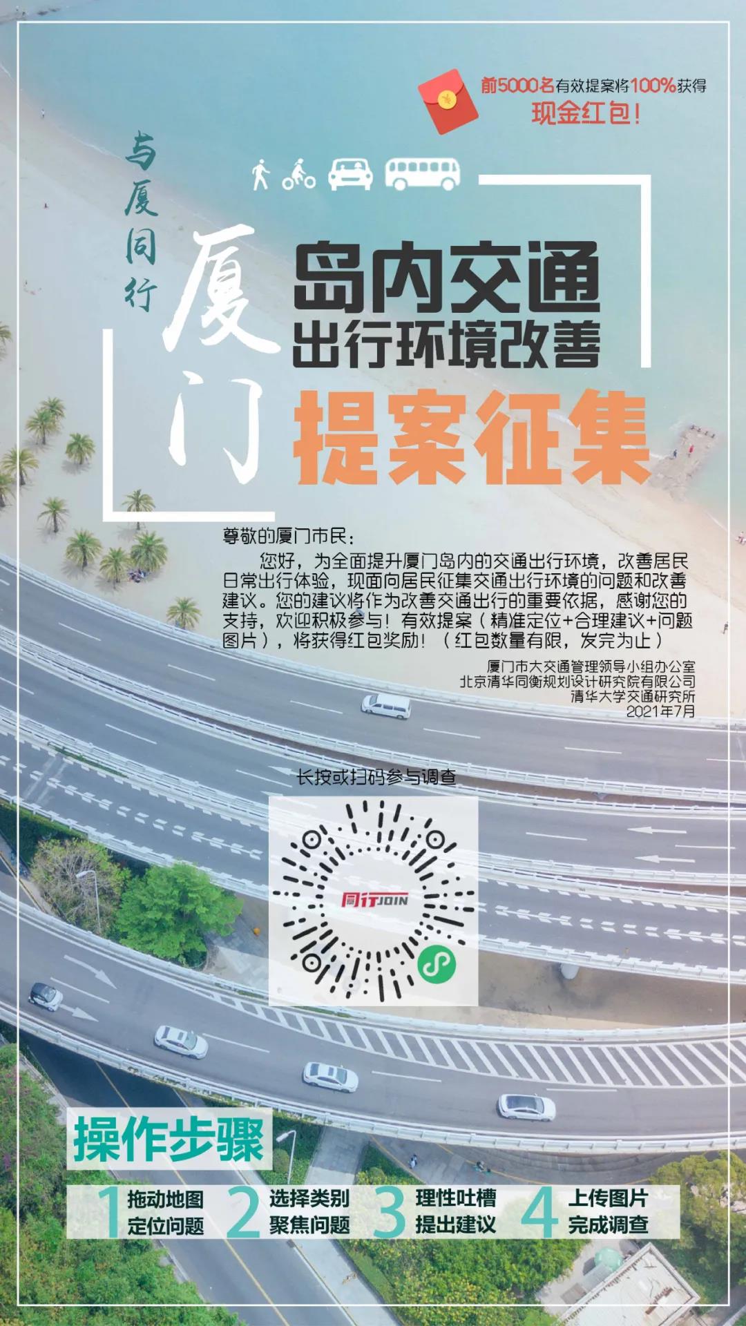 为全面提升厦门岛内的交通出行环境,改善居民日常出行体验,打造便捷可靠、绿色低碳、优美舒适的鹭岛交通系统,成为中国绿色出行城市的典范。厦门市大交通管理领导小组办公室联合北京清华同衡规划设计研究院有限公司和清华大学交通研究所,开展本次交通调查工作。